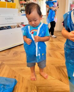 シールをペタペタはって可愛い法被の出来上がり✨